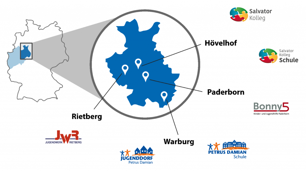 Die Jugendhilfe im Erzbistum Paderborn gGmbH engagiert sich als Träger von vier Jugendhilfeeinrichtungen und zwei Schulen in Ostwestfalen-Lippe für das Wohl von Kindern und Jugendlichen. Mit einem breiten Angebot an stationären, teilstationären und ambulanten Hilfen sowie therapeutischen und intensivpädagogischen Leistungen werden individuelle Bedürfnisse gezielt unterstützt. Die Einrichtungen befinden sich im regionalen Umkreis von Paderborn, stehen aber bei Bedarf auch Kindern und Jugendlichen aus ganz Deutschland offen.
